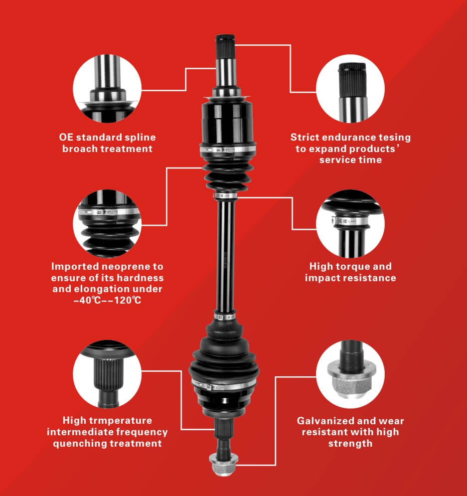주요 하중 지지 구성 요소는 AWD 미니밴의 일반적인 연속 회전 및 중간에서 높은 토크 조건에 맞게 선택된 특수 CV 조인트 스틸 #55 로 제조됩니다.